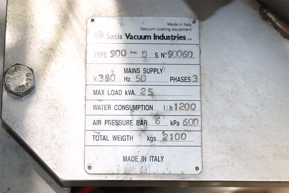 Satis Vacuum IndustriesVacuum coating equipmentM/N: 900 D